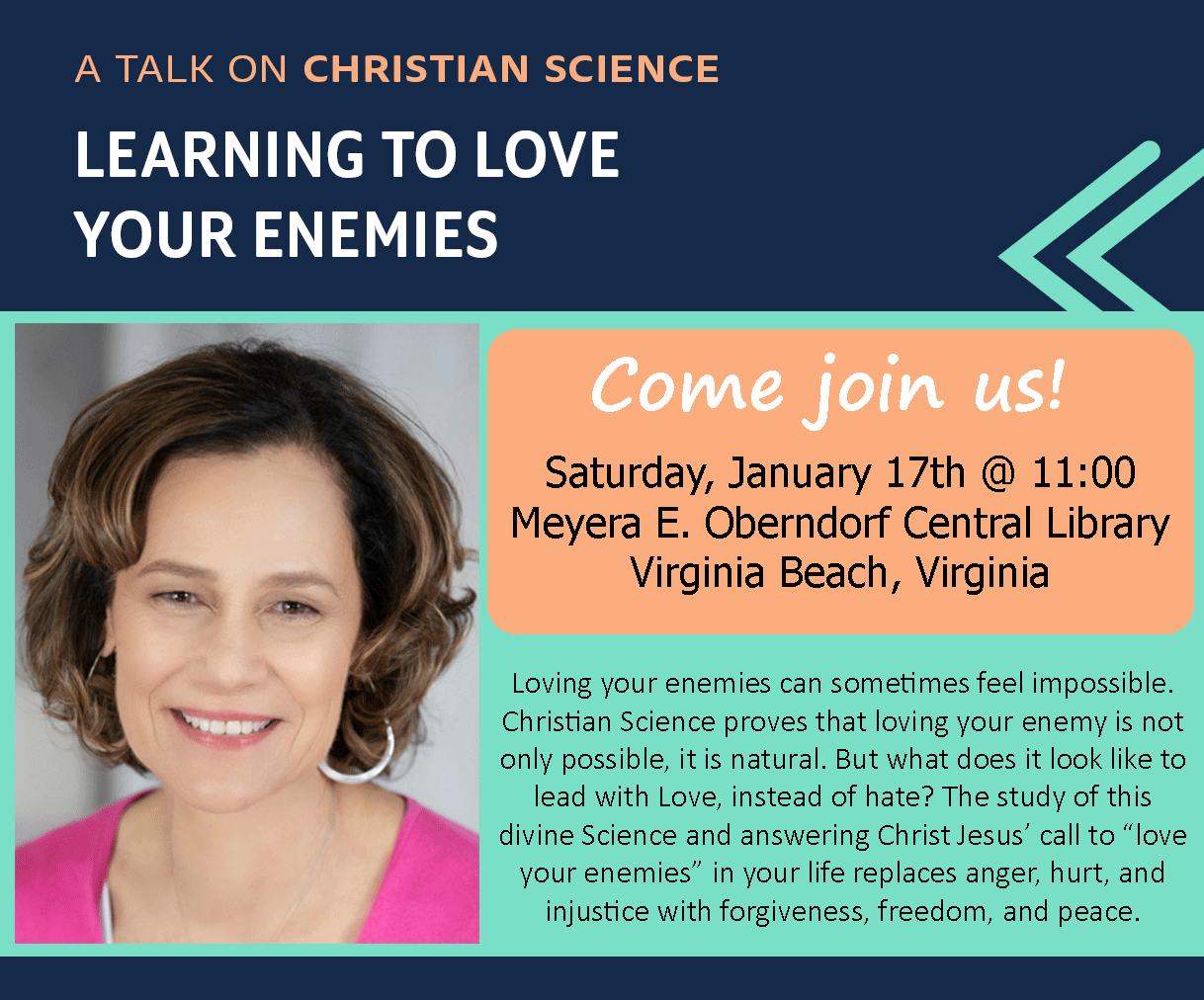 Loving your enemies can sometimes feel impossible. Christian Science proves that loving your enemy is not only possible, it is natural. But what does it look like to lead with Love, instead of hate? The study of this divine Science and answering Christ Jesus’ call to “love your enemies” in your life replaces anger, hurt, and injustice with forgiveness, freedom, and peace.
